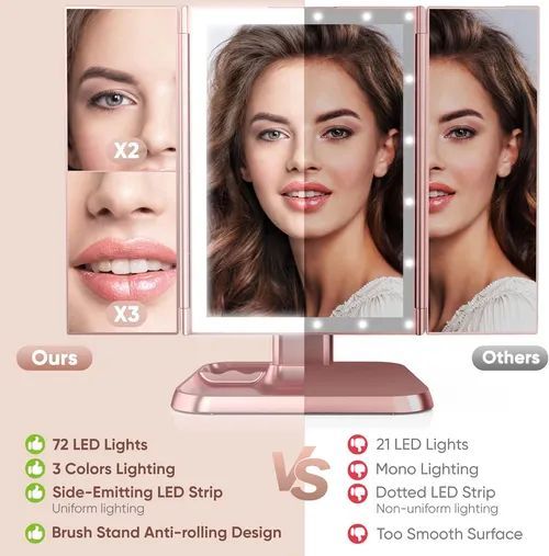 Desktop Tri-Fold LED Lighted Makeup Mirror - Rechargeable & Foldable Shell-Style | Valentine's Day Gift