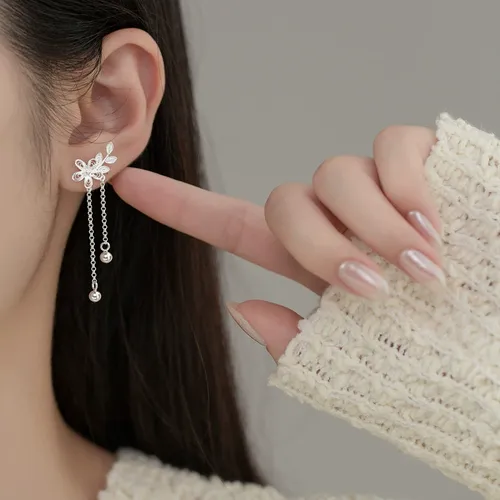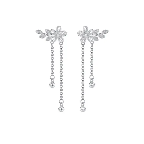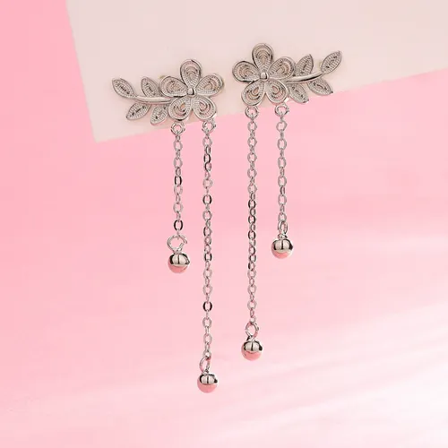 Elegant Long-style Earrings for Women in Ancient-style Cheongsam: Featuring Small Flower Tassels, Hollowed-out Plum Blossom Peach Blossom Designs