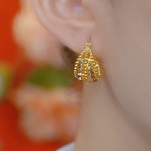 Exquisite Champagne Gold Hollow Out Diamond-Inlaid Basket Earrings