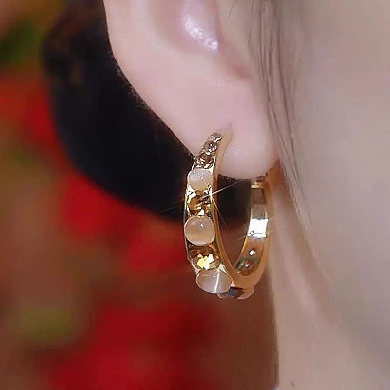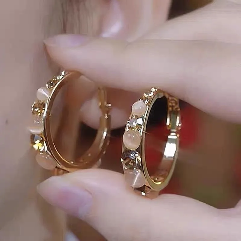 Fashion Sparkling Buckle Hoop Huggie Earrings Zircon Stone Opal Stud Earrings Geometric Diamond Earrings