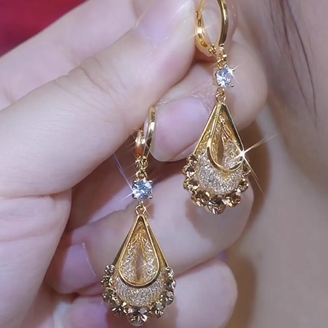 Korean Luxury Fine Earrings for Women Advanced Design Sense Exquisite Drop-Shaped Rhinestone Trendy Gold Plated Alloy Niche